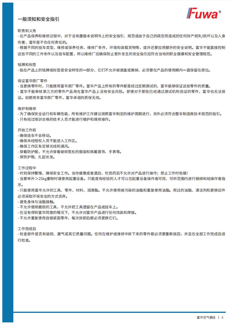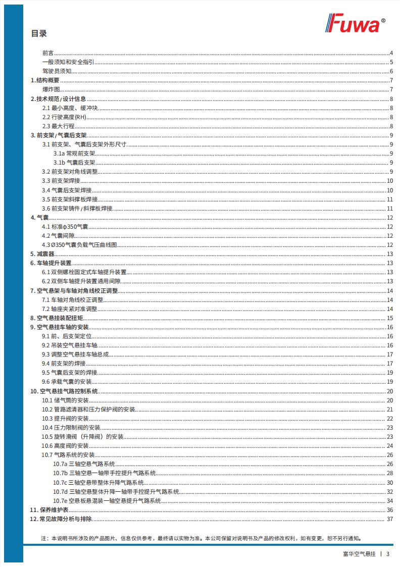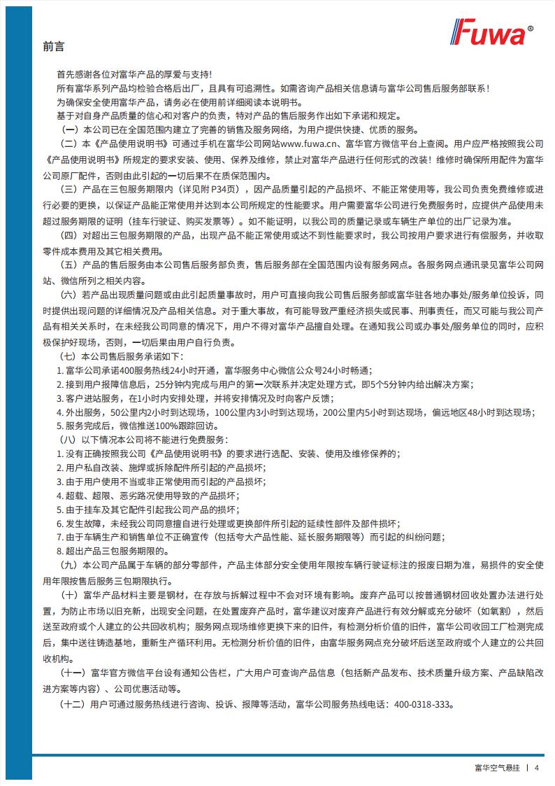 富华空气悬挂【产品使用说明书】