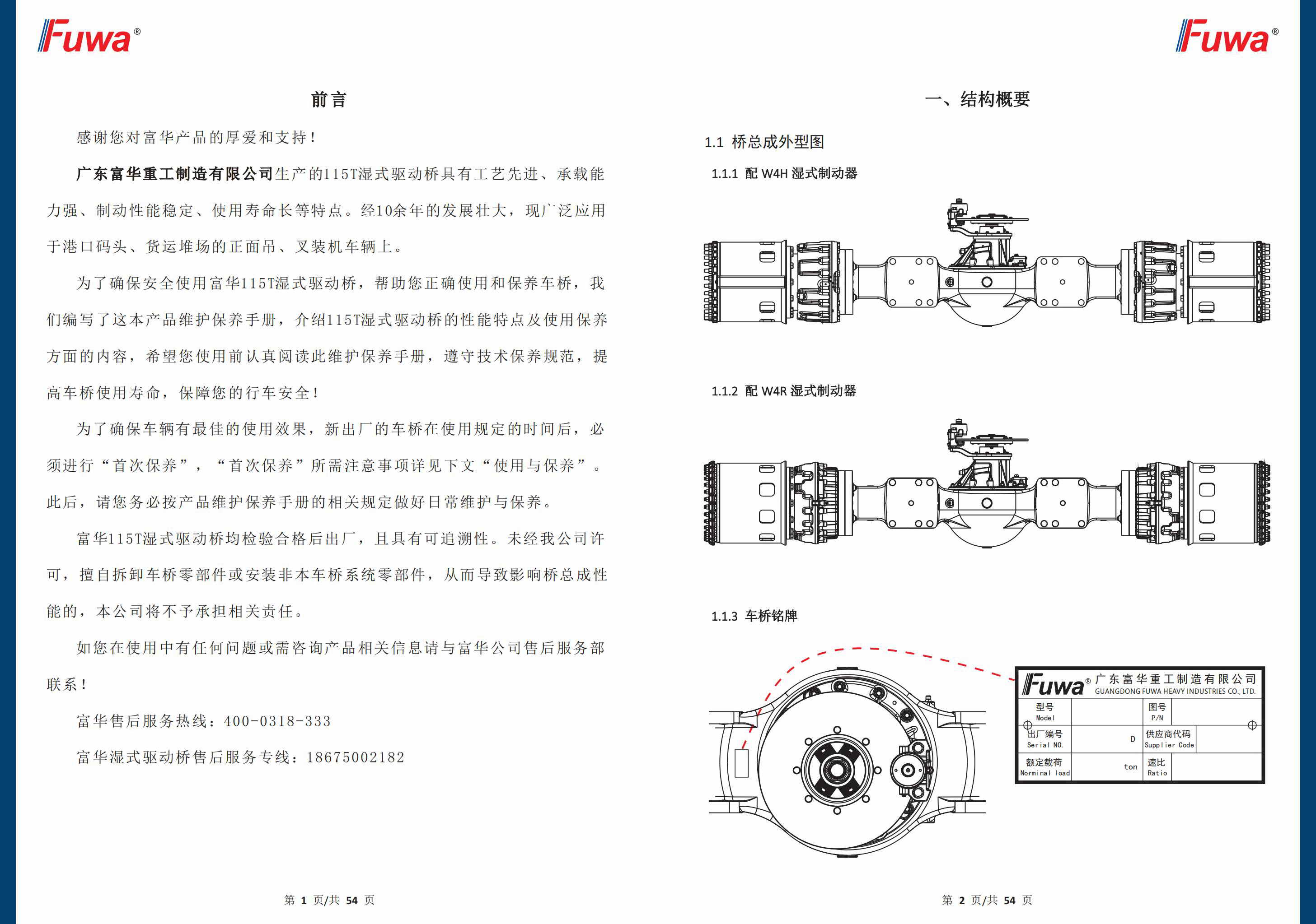 (正面吊)XWF-510 115吨湿式驱动桥总成产品维护保养手册