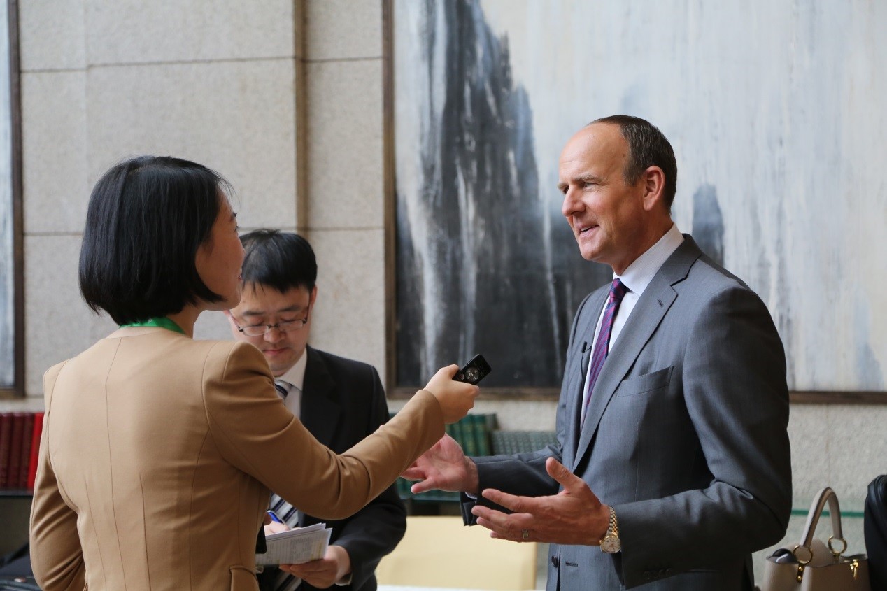 论坛期间,德・狄维士总裁还接受了新华社、中央电视台、人民网、新浪网等主流媒体专访,就中美贸易合作、中国投资环境等方面分享了自己的看法。他认为,应该继续促进两国贸易关系的紧密来往,将中美贸易互利共赢的理念发扬光大。当晚央视《新闻联播》节目,播放了对德・狄维士总裁的采访。他表示,中国的市场充满了活力,安利在华进行了很多研发、生产方面的投资,在未来会考虑中国市场环境,追加投资。而在去年中国发展高层论坛开幕首日的新闻联播中,他也表达了类似观点。