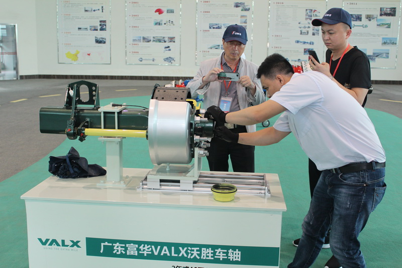 在ng电子产品展示厅,ng电子的销售团队向来宾们详细介绍了沃胜VALX车轴以及空气悬挂等产品,并在现场对沃胜VALX车轴的轮毂系统进行拆装演示。